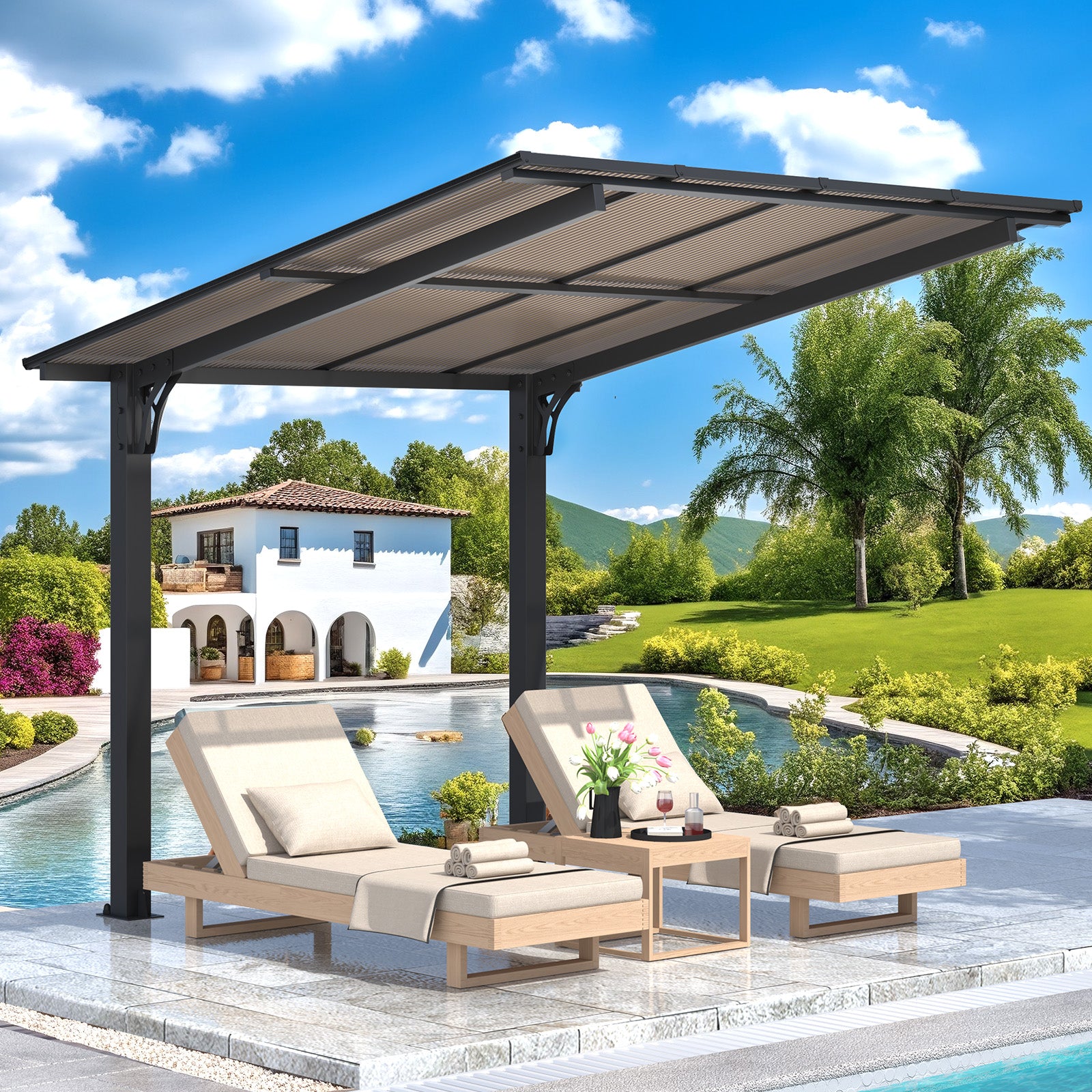 AECOJOY 8'x8' Gazebo, Outdoor Wall Mounted Hardtop Gazebo & Pergola with Aluminum Frame for Patio, Porch and Backyard in Black