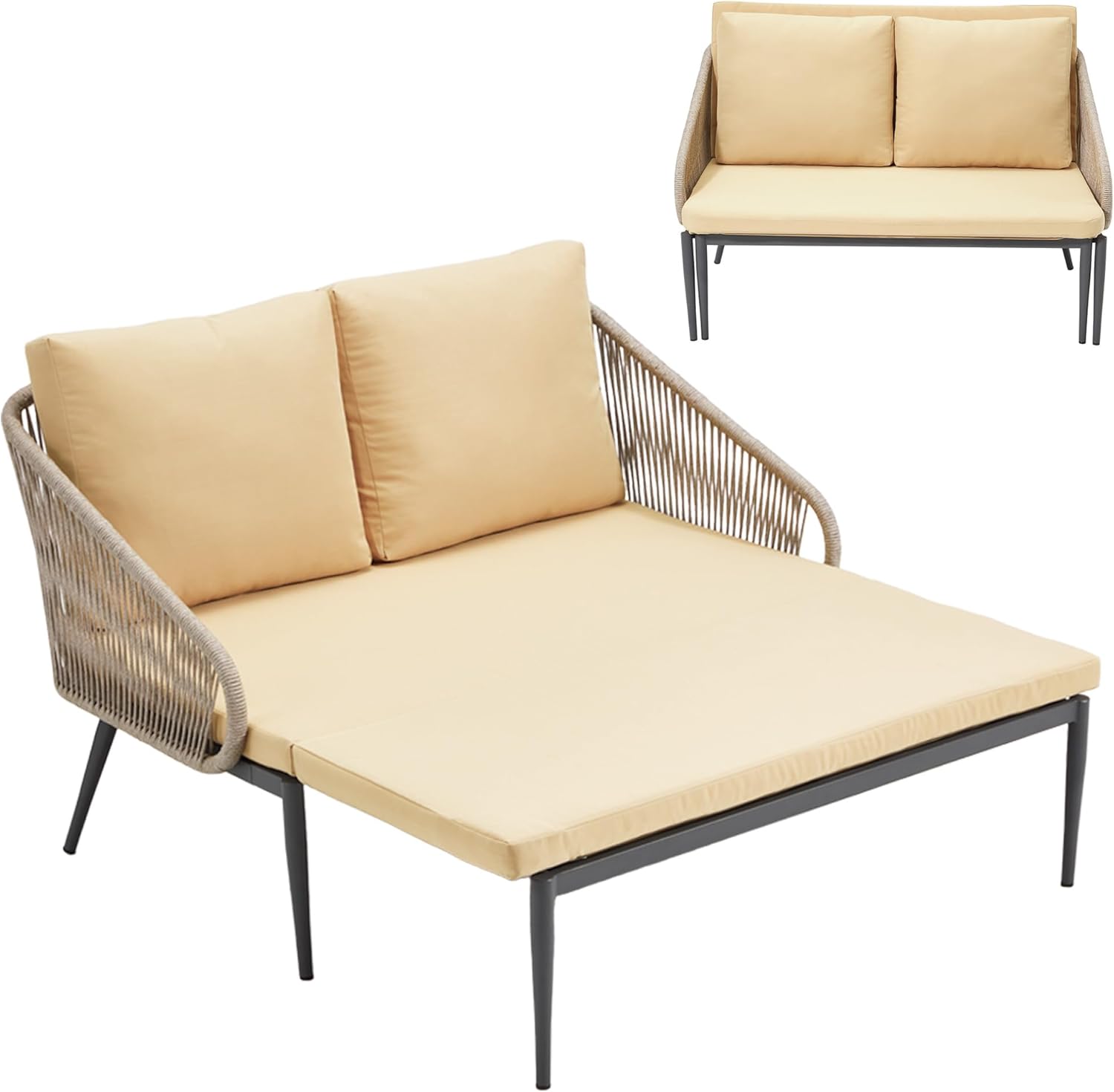 - 2-in-1 Convertible Design: Easily transforms from a cozy loveseat to a double chaise lounge chair, offering versatile comfort for any outdoor space