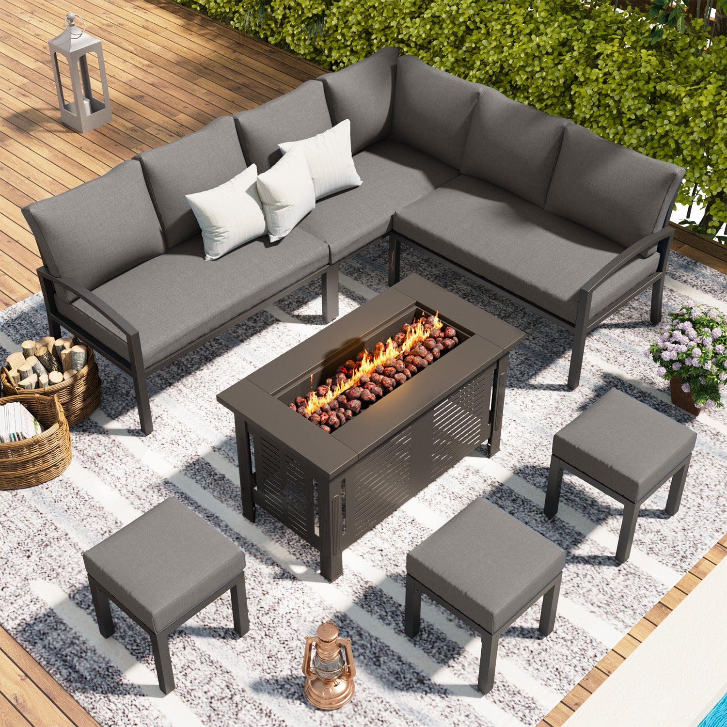 AECOJOY Patio Furniture Set with Fire Pit Table,Aluminum Outdoor Furniture Sets Clearance Metal Patio Sets on sale, Outdoor Conversation Sets, Dark Grey