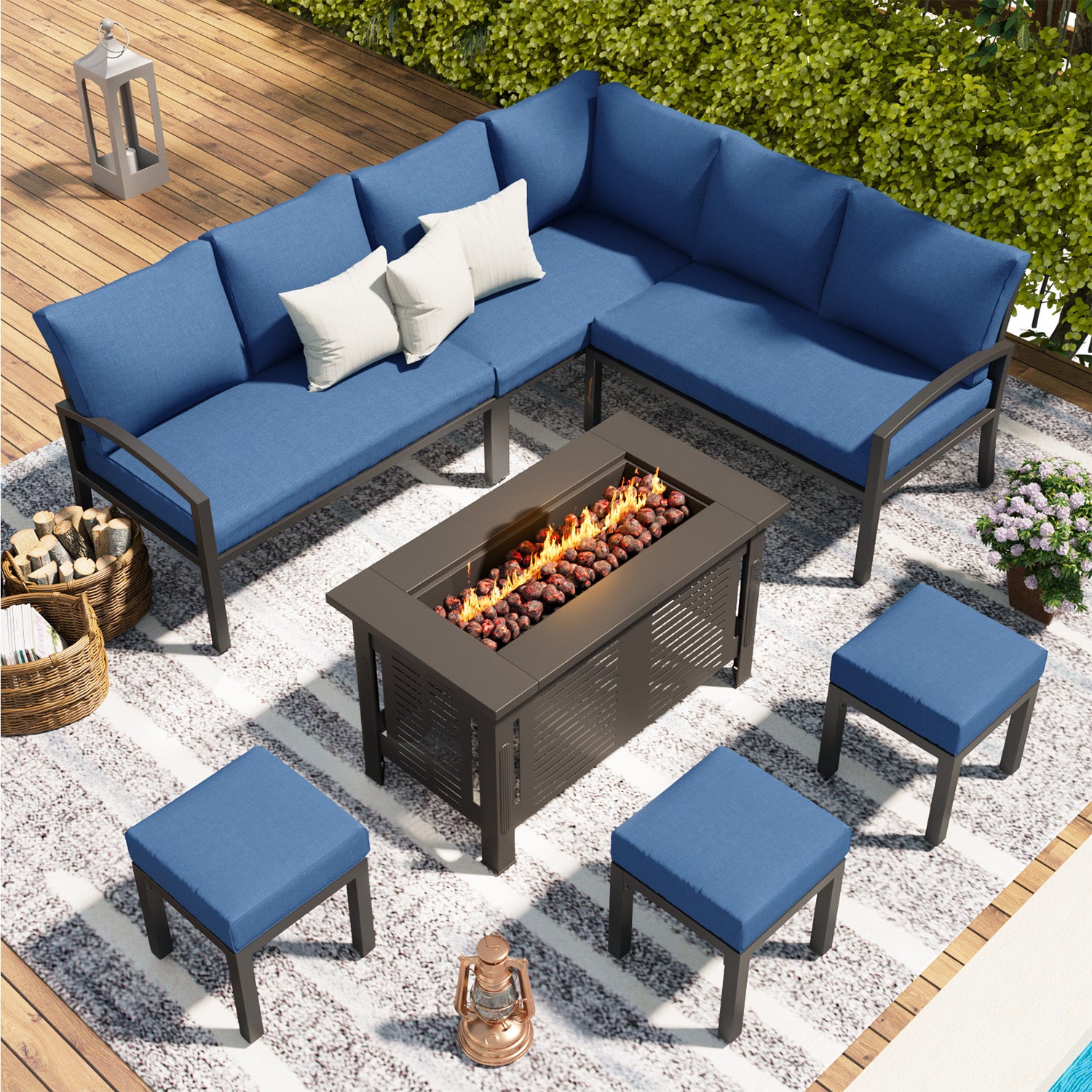 AECOJOY Patio Furniture Set with Fire Pit Table,Aluminum Outdoor Furniture Sets Clearance Metal Patio Sets on sale, Outdoor Conversation Sets, Navy