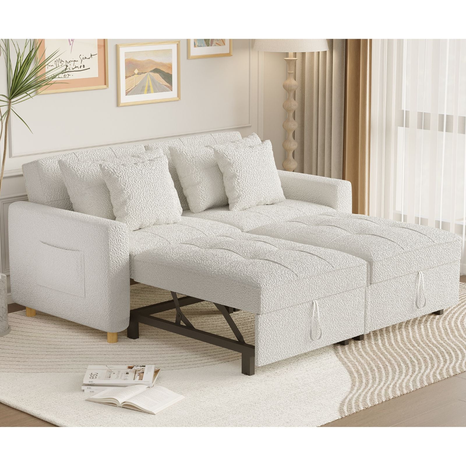 YODOLLA 3-in-1 Futon Pull Out Couch & 71" Sleeper Sofa Bed for Living Room & Bedroom, Convertible Loveseat in Teddy Velvet White