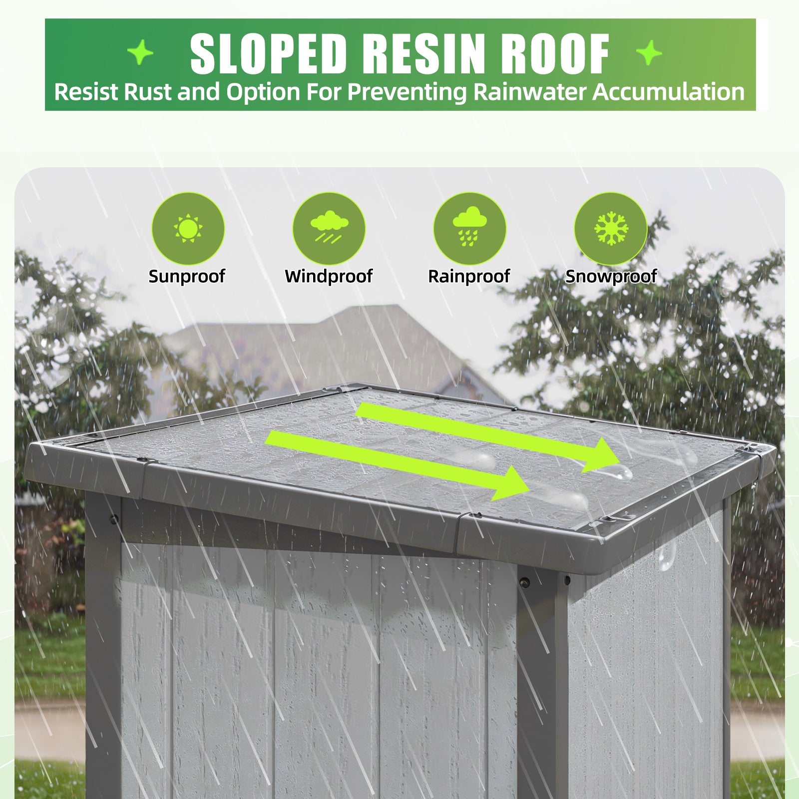 - 🌧️ Built for the Outdoors With its smart sloped roof, this cabinet keeps rainwater from pooling and makes sure your stuff stays dry—even during stormy weather. It’s been tested to handle sun, wind, rust, mold, and rain like a champ. No more soggy tools or warped shelves!