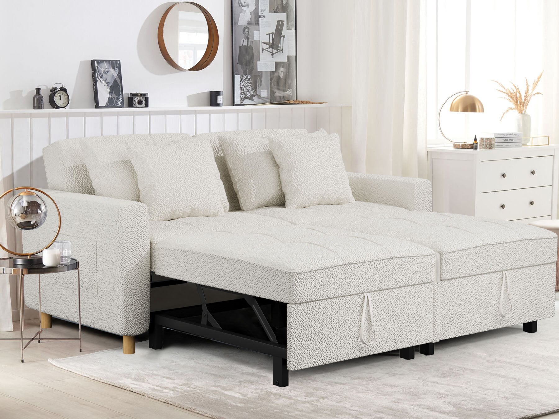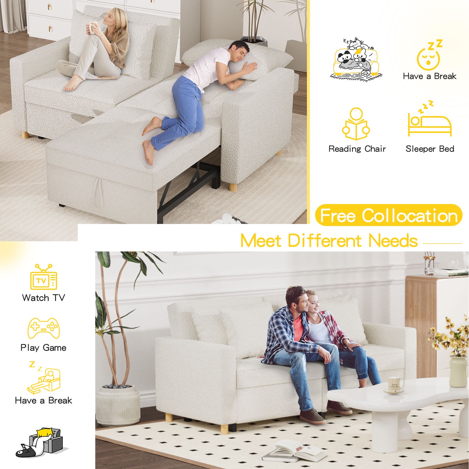 YODOLLA 71" Sleeper Sofa Bed & 3-in-1 Futon Pull Out Couch for Living Room & Bedroom, Convertible Loveseat in Teddy Velvet White sofa bed