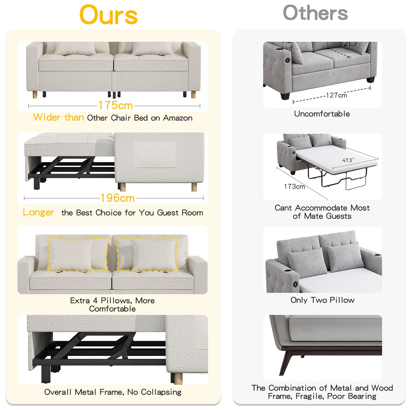 - 【Loveseat Sleeper Sofa Bed】The double seat configuration, double size design, provides more possibilities for double seats. You can watch TV in the living room with your spouse, friends, or your children, or take a lunch break together.