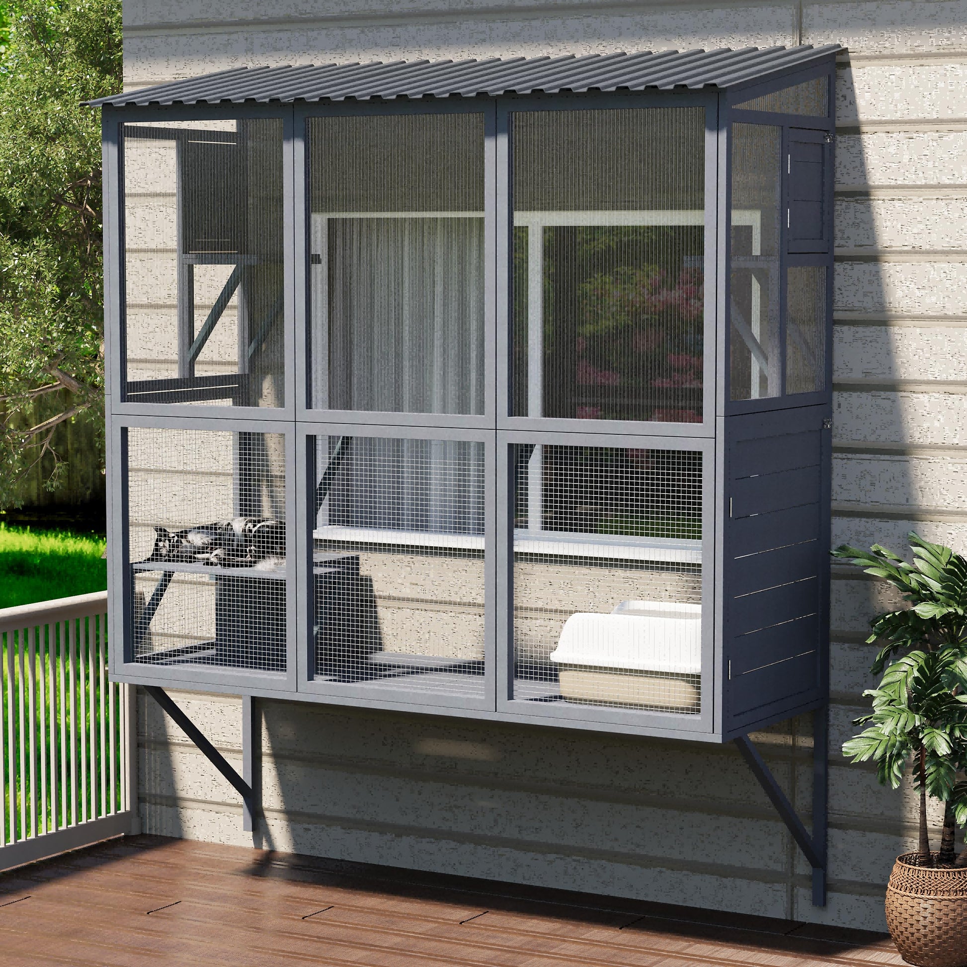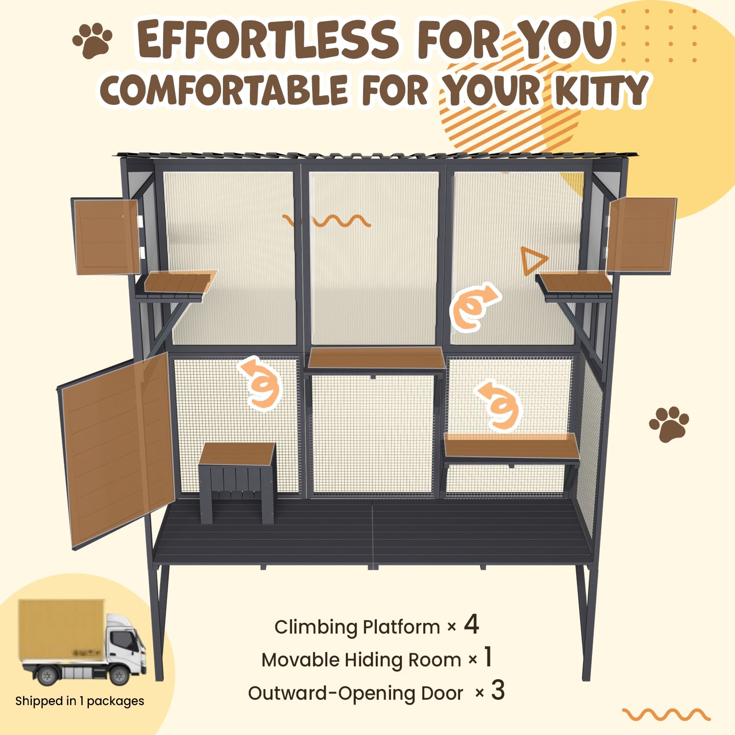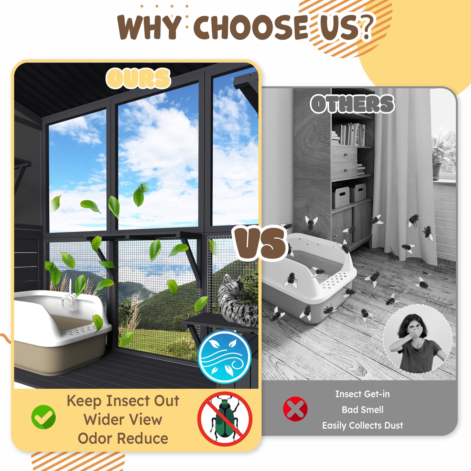 - [Versatile Installation Options]: This cat enclosure is designed to be installed around a window for easy access for your cat. It can also be mounted on a wall as a standalone outdoor cat house. The elevated base ensures the cat house stays dry, even in outdoor conditions