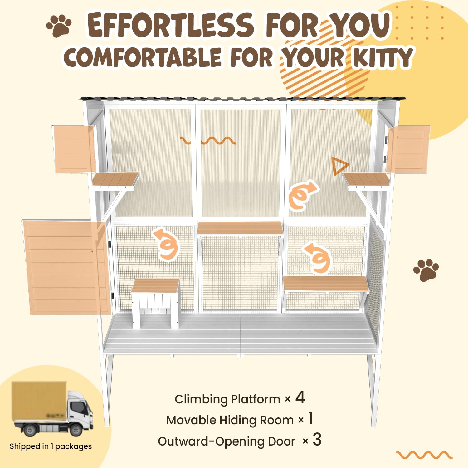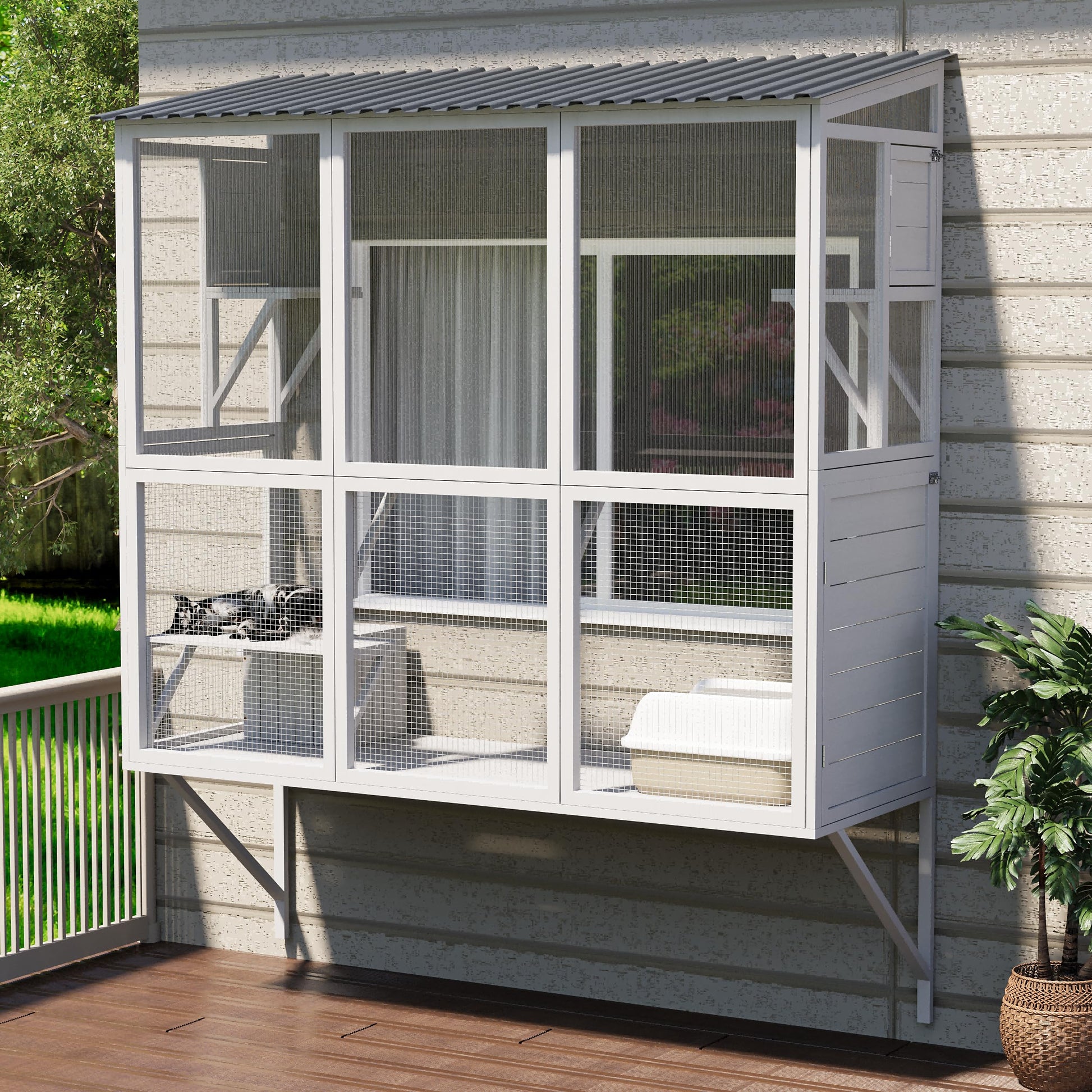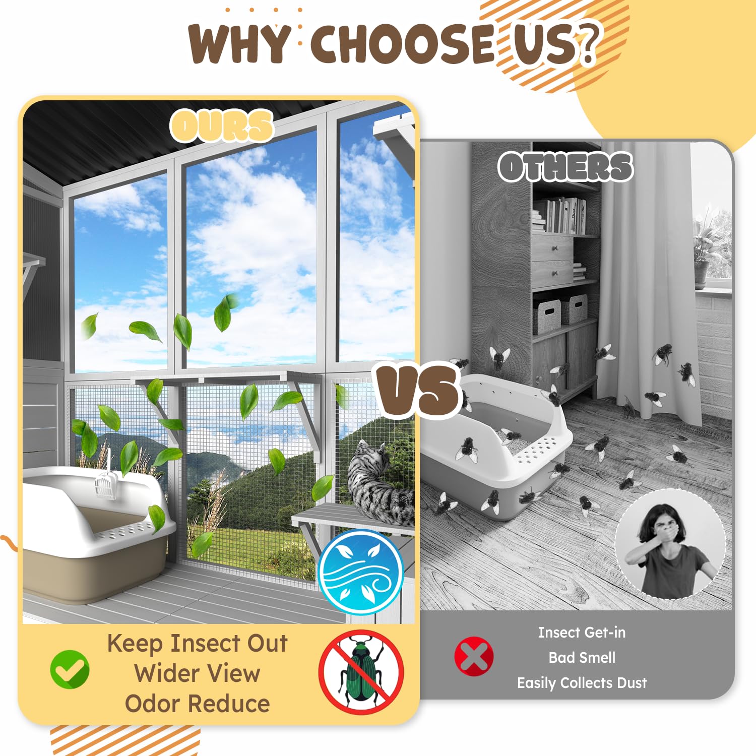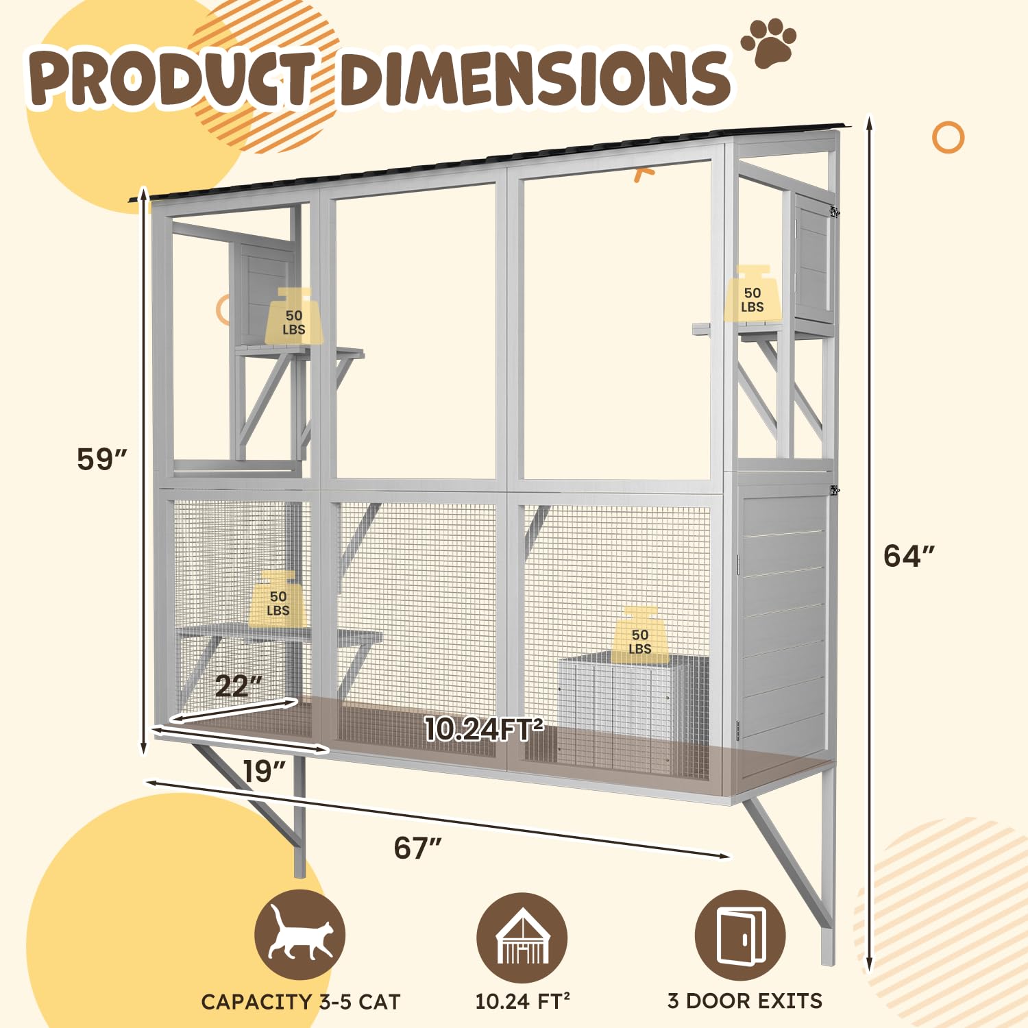 - [Versatile Installation Options]: This cat enclosure is designed to be installed around a window for easy access for your cat. It can also be mounted on a wall as a standalone outdoor cat house. The elevated base ensures the cat house stays dry, even in outdoor conditions
