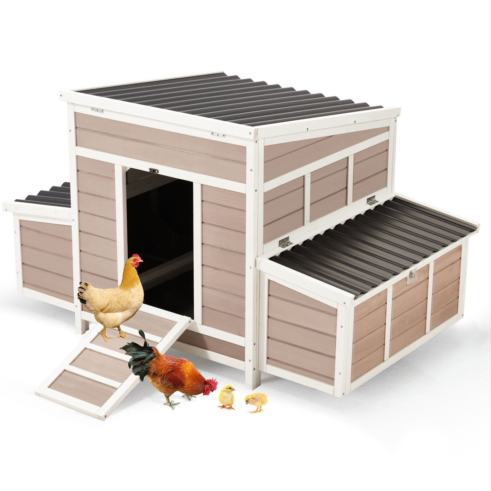 - Waterproof Roof -- The roof of the wooden chicken coop is made of PVC board with groove design, which is better than ordinary asphalt roof in terms of water resistance as well as drainage, making your chickens feel comfortable even in bad weather