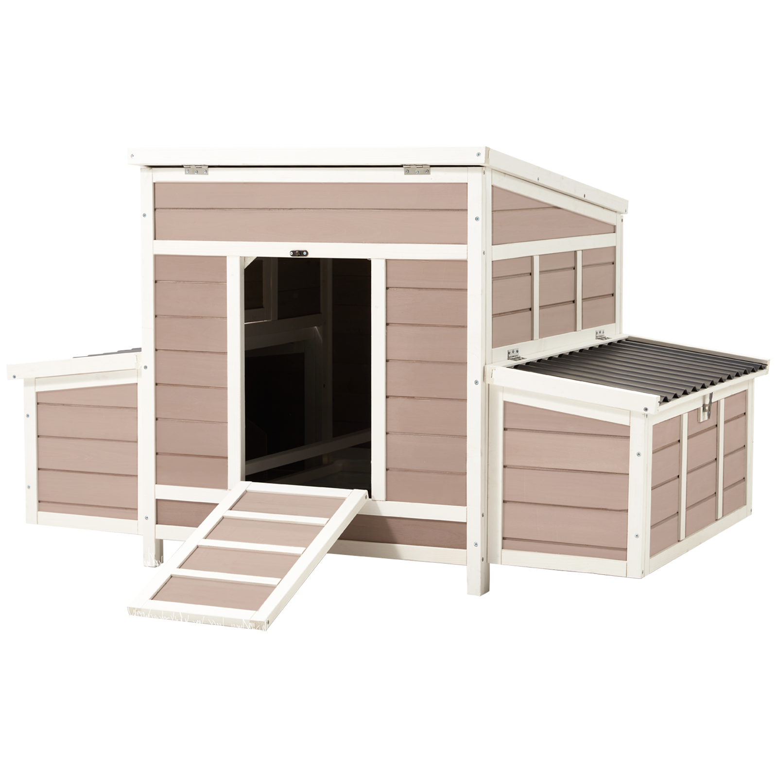 - A Comfortable Home For Hens -- This wooden hen house comes with 6 large nesting boxes, and ramps to give your pet a comfortable life.