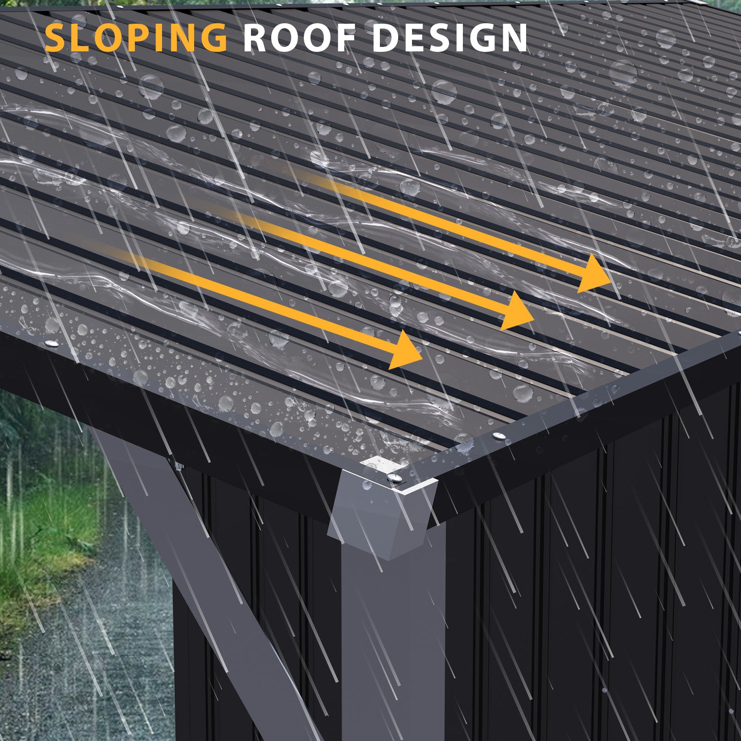 - 7" Snow Load Capacity: The hardtop attached gazebo has been tested to withstand 6 lbs/sq.ft of snow, ensuring reliable load-bearing even in harsh weather. Premium galvanized steel not only enhances the shed's durability but also reinforces stability for the metal pergola.
