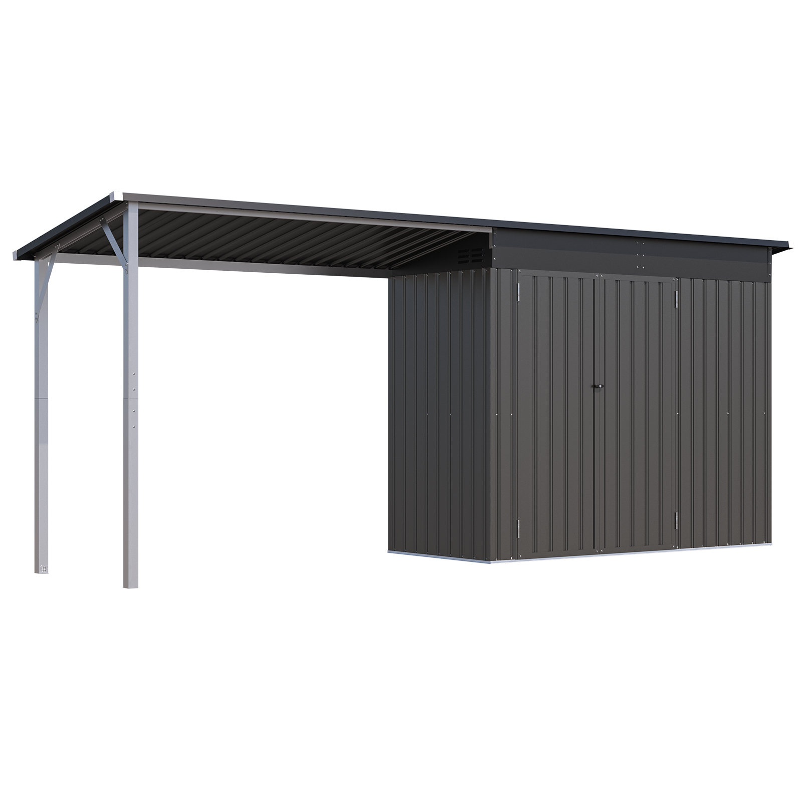 - 2-in-1 Storage: This versatile 8x4 storage shed extends to include a 56 sq. ft. covered area. The lockable enclosed space is perfect for storing tools, while the gazebo-covered area is ideal for placing a grill, lawn mower, kids' bikes, or other frequently used items.