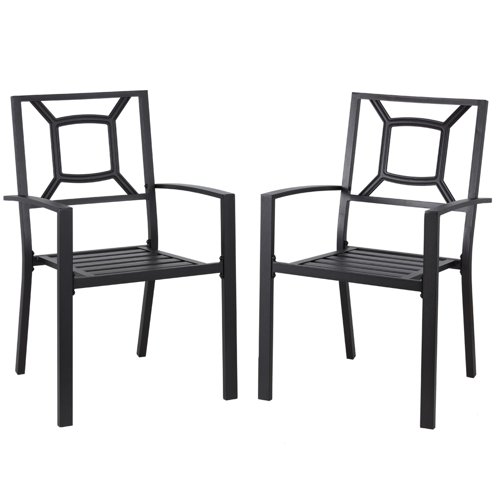 YODOLLA Set of 2 Outdoor Patio Dining Chairs, Arm Chairs with Heavy-Duty Metal Frame for Poolside, Backyard, Balcony, Garden, Porch, Black